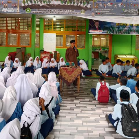 Padang, Humas — Forum Annisa, kegiatan rutin yang dikhususkan bagi para siswi MTsN 4 Kota Padang, kembali digelar pada Jumat siang (24/10/2025). Kegiatan tersebut berlangsung di lapangan serbaguna madrasah mulai pukul 11.30 WIB dan dihadiri oleh seluruh siswi beserta guru pembimbing.Pada pertemuan