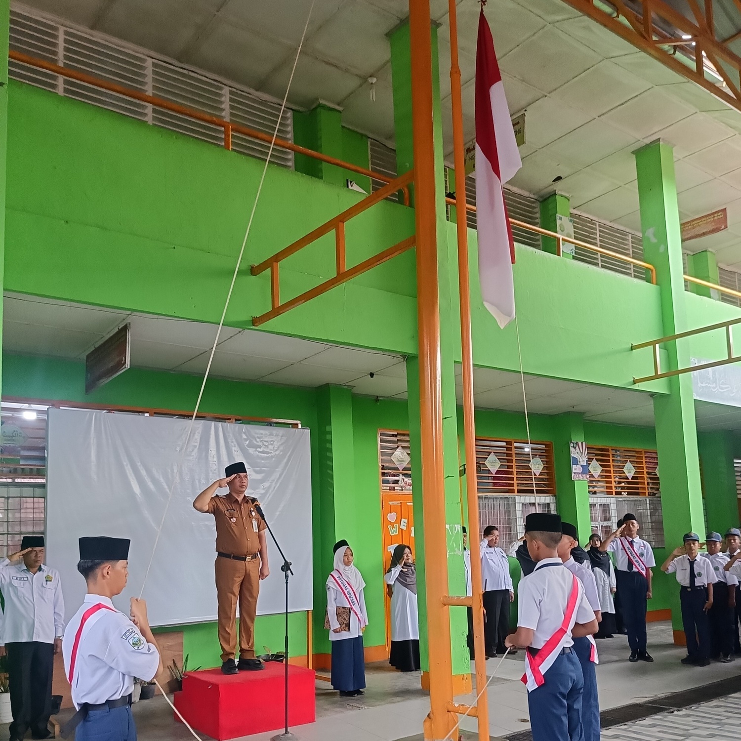 Padang, Humas — Kegiatan Upacara Bendera kembali digelar di MTsN 4 Kota Padang, Senin (27/10/2025), bertempat di lapangan serbaguna madrasah. Upacara berlangsung khidmat dan tertib, diikuti oleh seluruh guru, tenaga kependidikan, serta peserta didik.