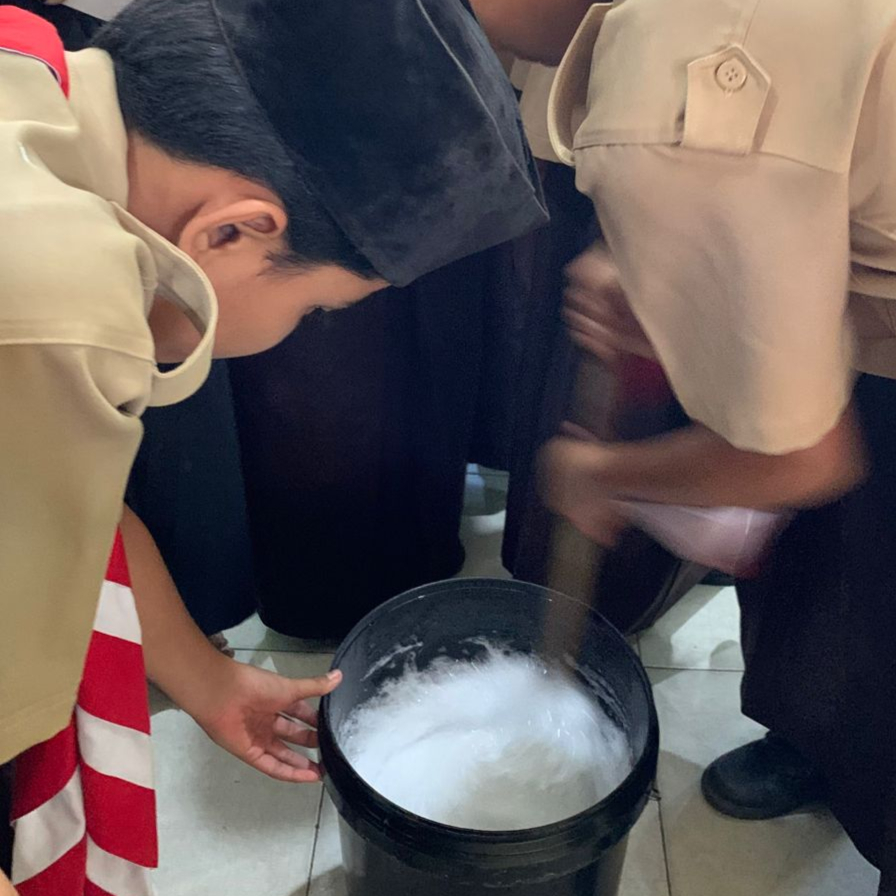 Kegiatan berlangsung lancar dan penuh antusias. Para siswa tampak aktif berdiskusi, mengaduk bahan, serta mencatat hasil pengamatan. Nilai kerja sama, ketelitian, dan tanggung jawab tampak menonjol di setiap kelompok.