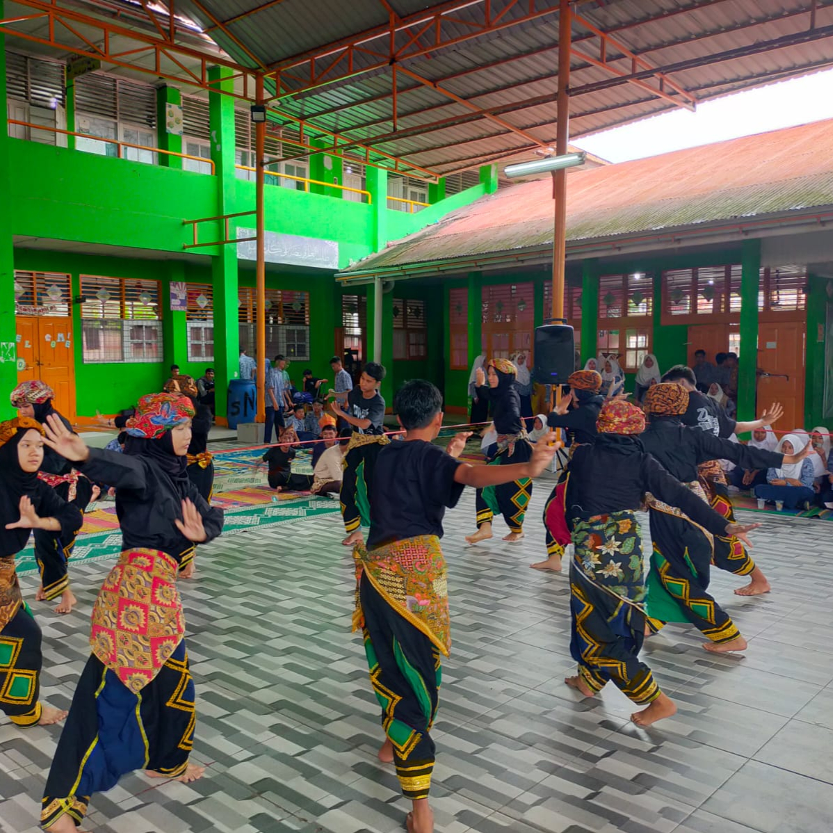 Padang, Humas — Program Penguatan Profil Pelajar Pancasila dan Rahmatan Lil ‘Alamin (P5RA) di MTsN 4 Kota Padang memasuki tahap puncak pada Rabu (26/11/2025). Setelah lebih dari satu minggu siswa kelas VII, VIII, dan IX mempelajari teori serta teknik dasar randai, hari ini mereka menampilkan keahlian terbaiknya dalam seni tradisi Minangkabau tersebut di halaman serbaguna madrasah.