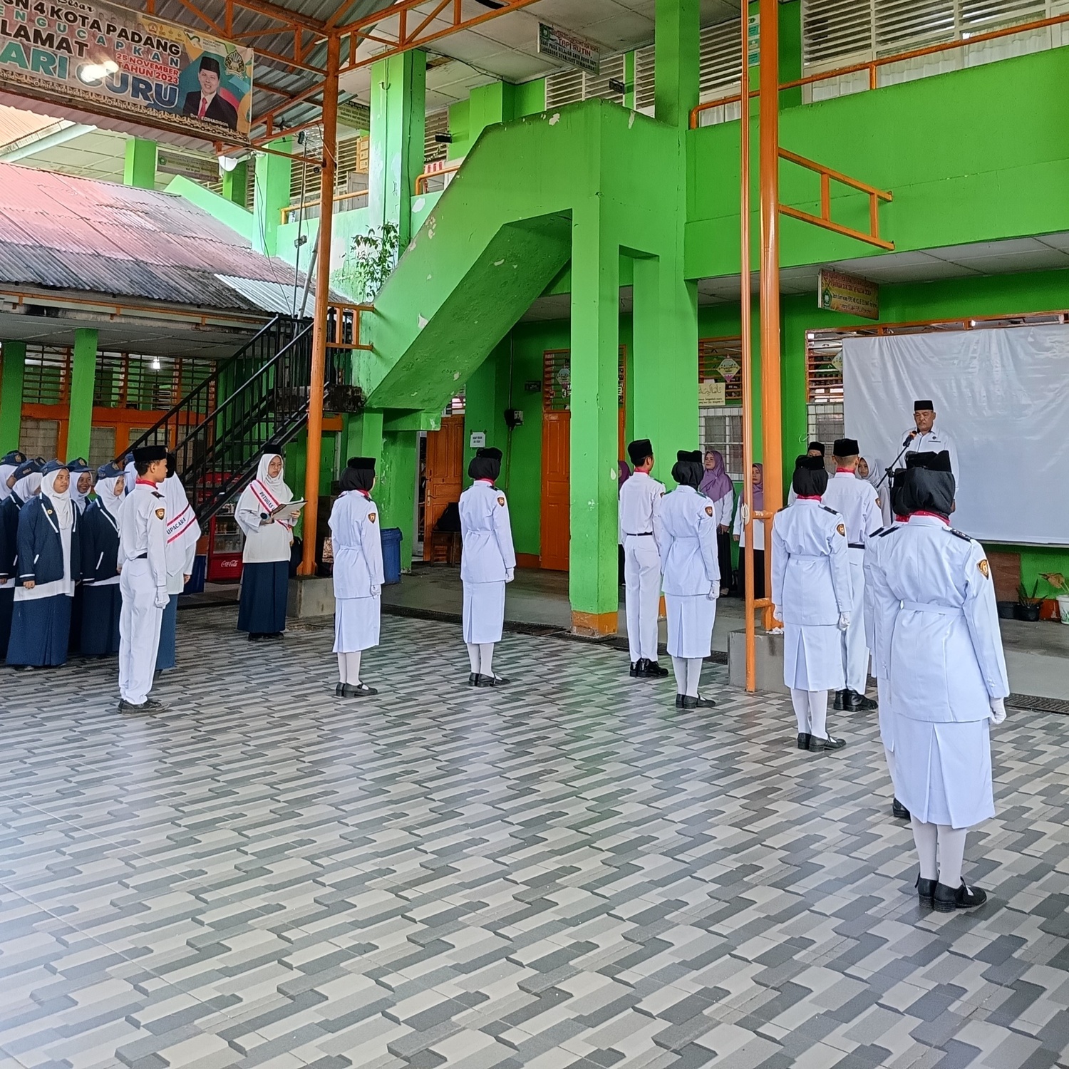 Padang — Humas: Senin, 8 September 2025, MTsN 4 Kota Padang kembali melaksanakan upacara bendera rutin di halaman serbaguna madrasah. Upacara berlangsung khidmat berkat penampilan maksimal para petugas dari OSIM yang menunjukkan kedisiplinan tinggi. Suasana semakin semarak dengan penampilan drumband yang menambah kekhusyukan dan semangat peserta.